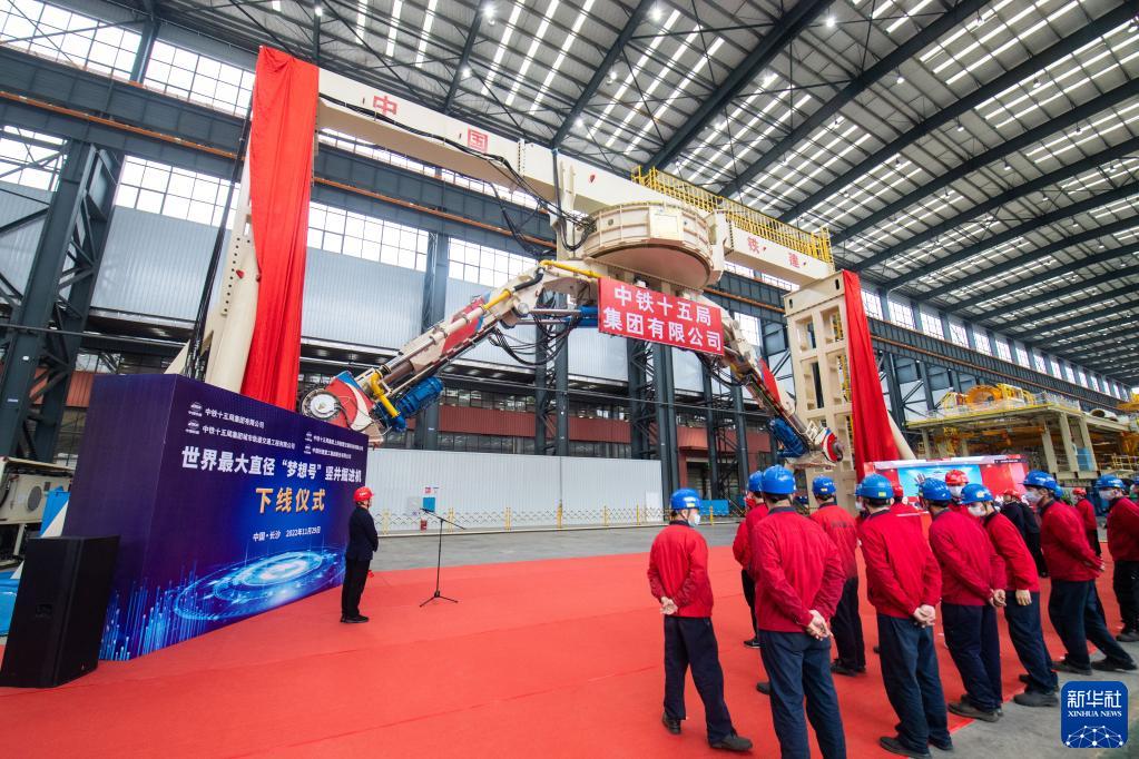 當日,由我國自主研制的超大直徑豎井掘進機“夢想號”在長沙下線。“夢想號”整機高約10米,開挖直徑達23.02米,標志著我國地下空間領域工程裝備科技攻關及應用又上新臺階。