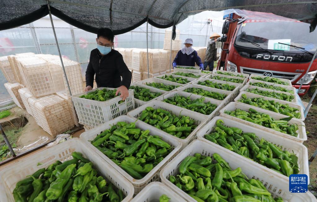 11月29日,在安徽省安慶市宜秀區(qū)白澤湖鄉(xiāng)黃石村蔬菜大棚基地,工人們加緊采收辣椒,保證市場(chǎng)供應(yīng)。