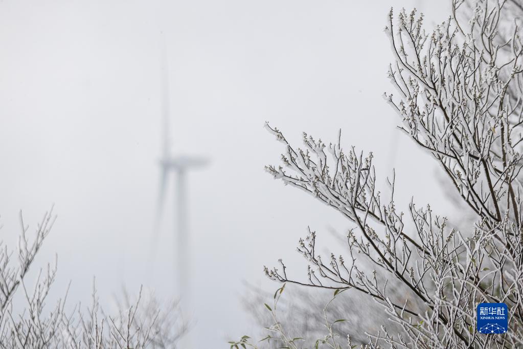 11月30日拍攝的浙江省湖州市長興縣和平鎮大崗山雪景。