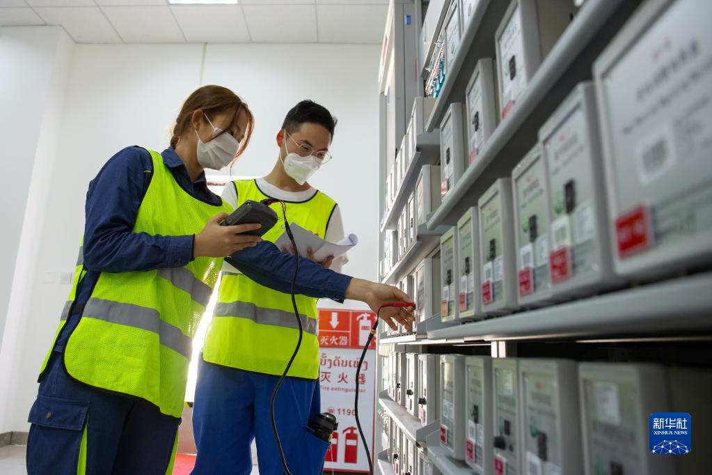 12月1日,在老撾瑯勃拉邦,中老鐵路雙方員工共同維護鐵路設施。