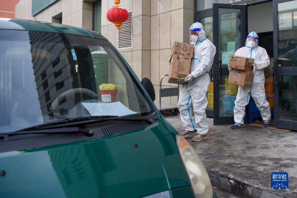 在中國郵政集團有限公司烏魯木齊市分公司商企中心,攬投員將準備投送的保供物資裝車(12月1日攝)。