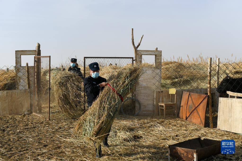 12月2日,溫圖高勒邊境派出所民警為溫圖高勒蘇木牧民搬運(yùn)牧草。