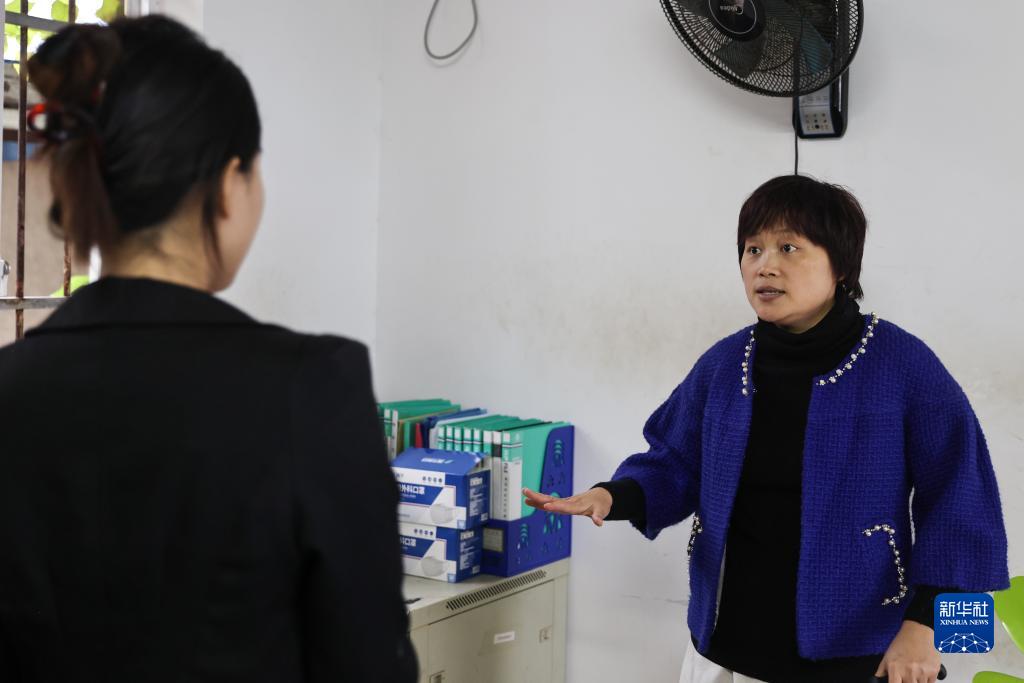 12月1日,陳德琳(右)給新來的員工介紹公司情況。
