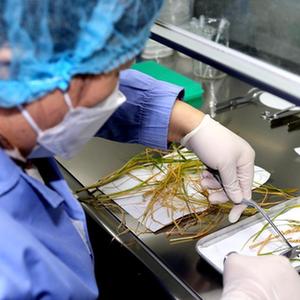12月5日,在中科院空間應(yīng)用中心生物實驗室,中科院分子植物科學(xué)卓越創(chuàng)新中心鄭慧瓊研究員處理從太空歸來的水稻樣品。