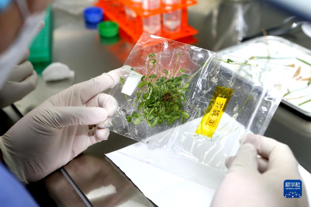 12月5日,在中科院空間應用中心生物實驗室,中科院分子植物科學卓越創新中心鄭慧瓊研究員處理從太空歸來的擬南芥樣品。
