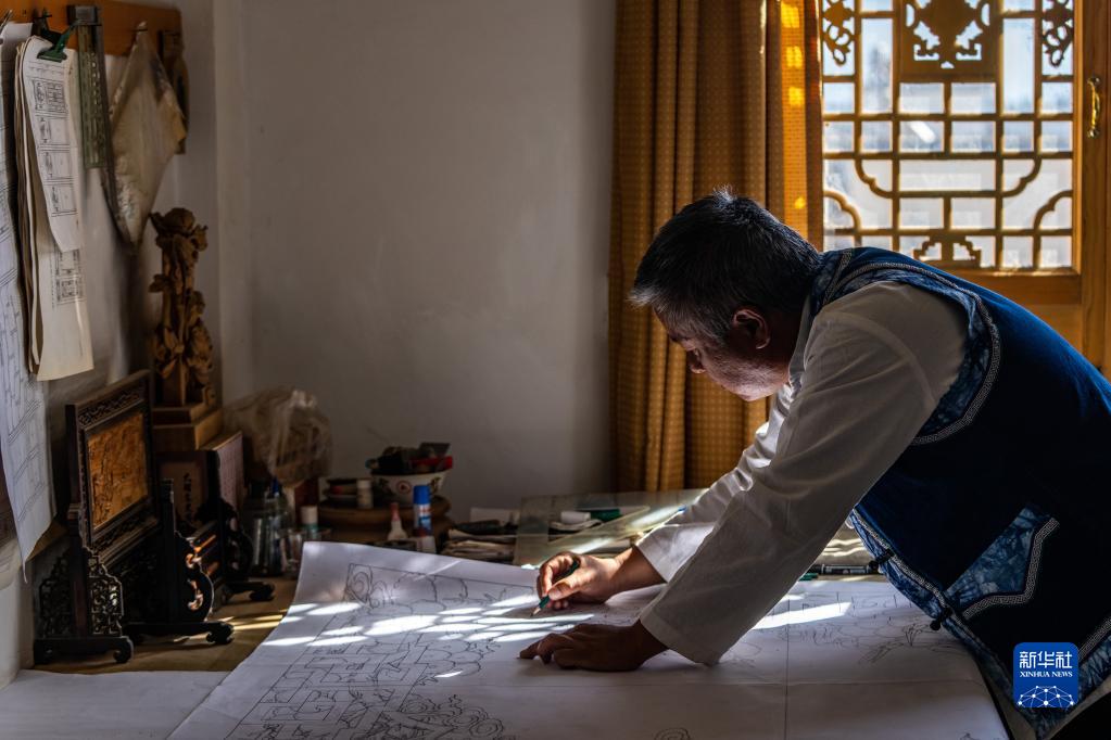 段四興在繪制木雕圖樣(12月2日攝)。