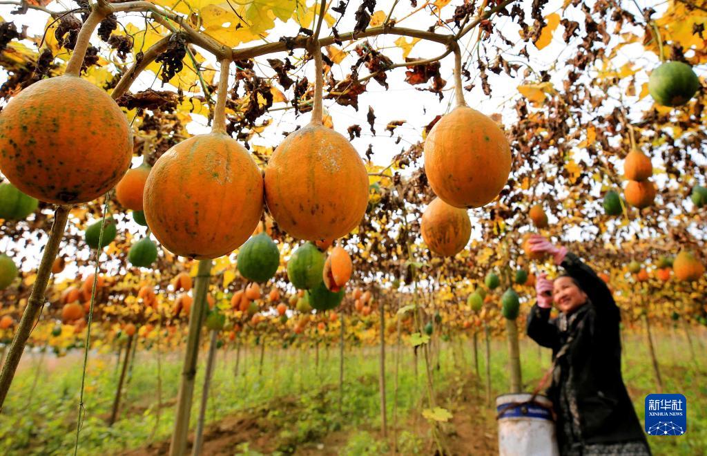 12月7日,江西省宜春市靖安縣水口鄉(xiāng)桃源村農(nóng)民在采收吊瓜。