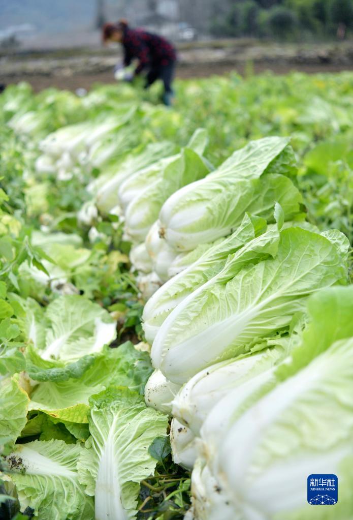 12月7日,湖北省宣恩縣曉關侗族鄉張官村蔬菜專業合作社社員在搶收大白菜。