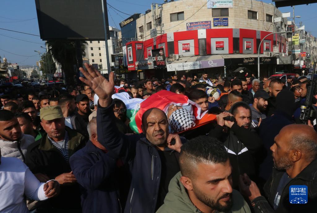 12月8日,在約旦河西岸北部城市杰寧,人們為被以色列軍隊打死的巴勒斯坦人送葬。
