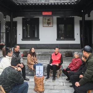 12月9日,在杭州市臨安區太陽鎮上莊村,黨員志愿者和村民們一起參加家風故事會。