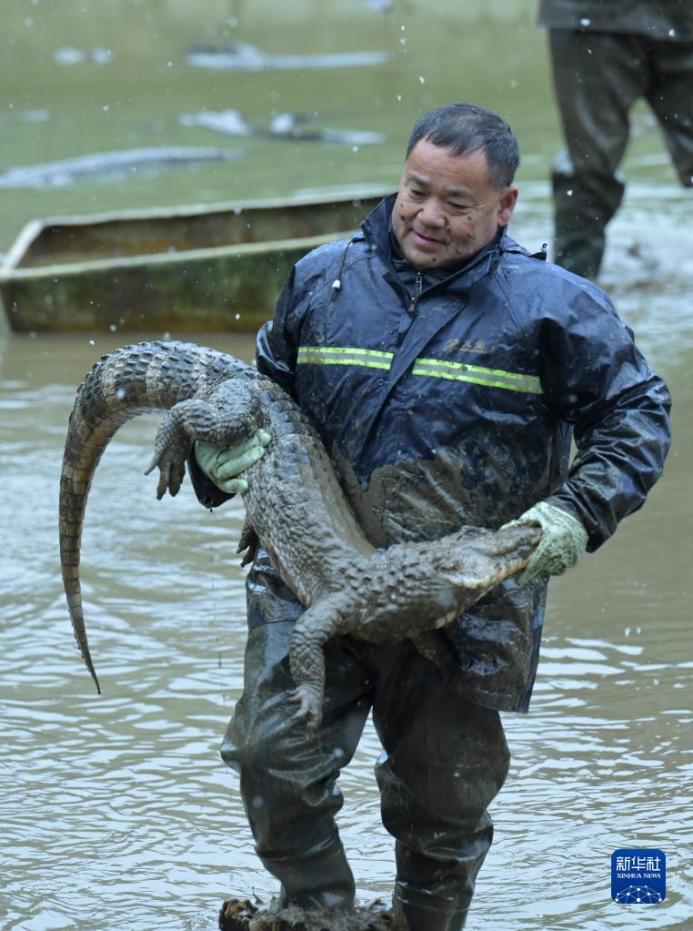 隨著天氣轉寒,位于安徽省宣城市的安徽揚子鱷國家級自然保護區夏渡片區開始對人工繁育的揚子鱷進行一年一度的越冬轉場。工作人員將揚子鱷從飼養池搬運至專門設置的越冬暖房冬眠,保證揚子鱷安全過冬。