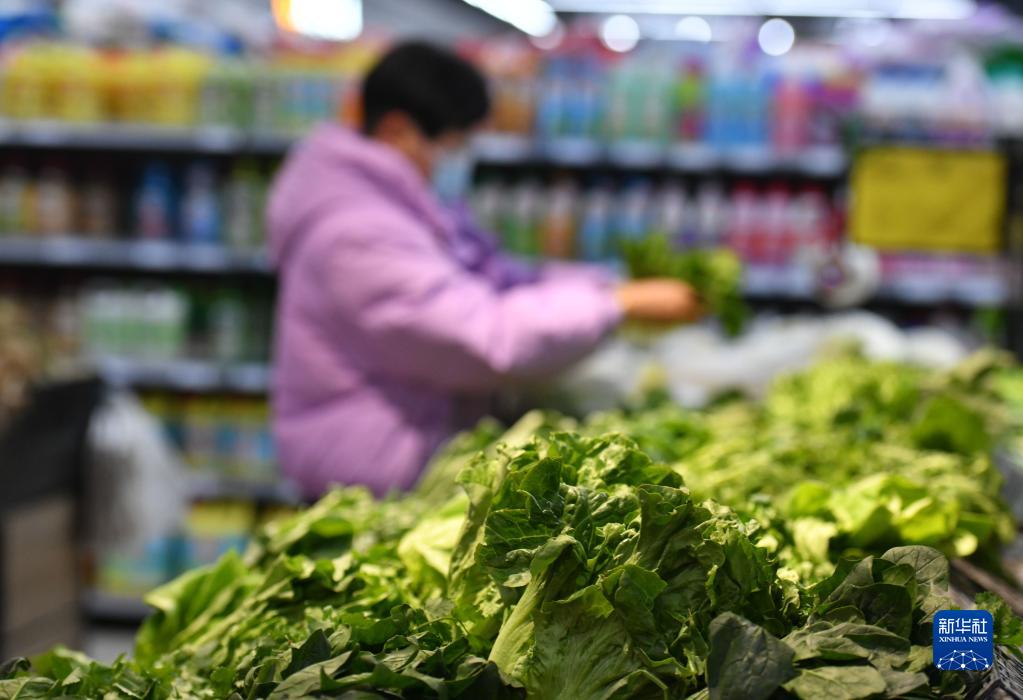 12月9日,顧客在安徽省阜陽市臨泉縣一家超市選購蔬菜。
