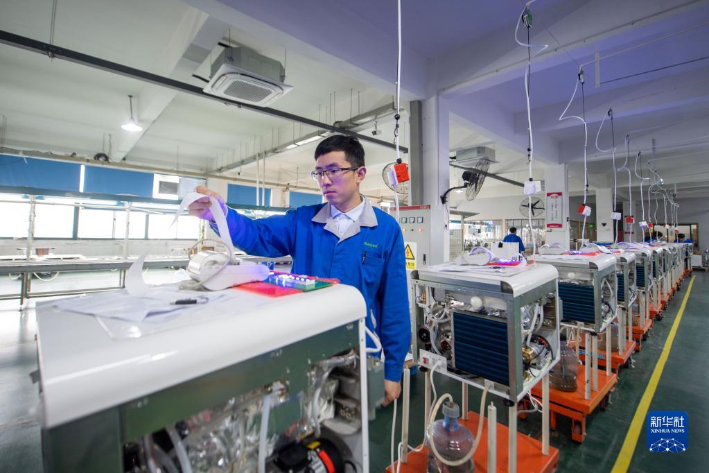12月9日,工人在寧波藍野醫(yī)療器械有限公司的生產(chǎn)線上工作。