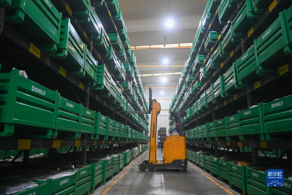 12月9日,叉車在寧波東力傳動(dòng)設(shè)備有限公司庫(kù)房?jī)?nèi)裝卸產(chǎn)品。