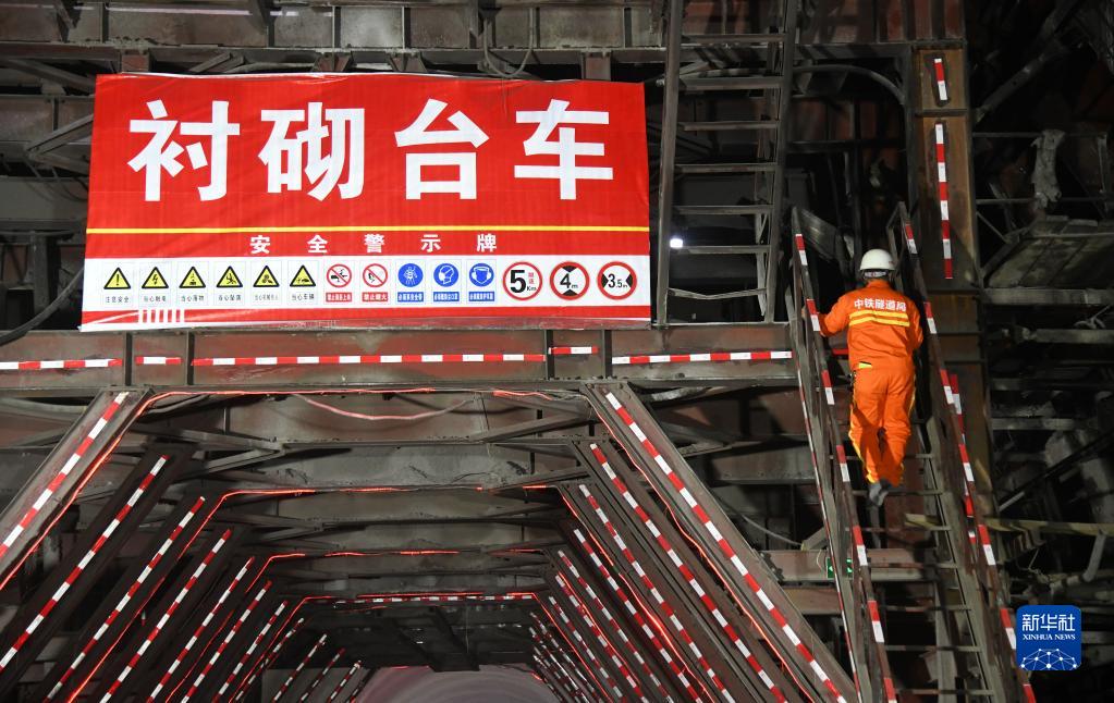 12月9日,施工人員在西延高鐵新延安隧道內作業。