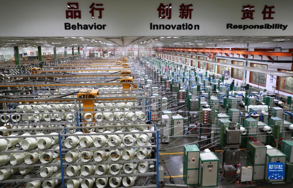 這是9月7日在埃及蘇伊士省蘇赫奈泉港拍攝的中國巨石埃及玻璃纖維股份有限公司(巨石埃及)生產車間。