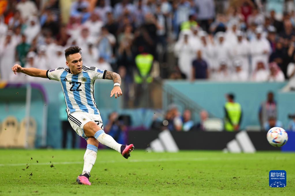 12月9日,阿根廷隊球員勞塔羅·馬丁內斯在點球大戰中主罰點球得分。