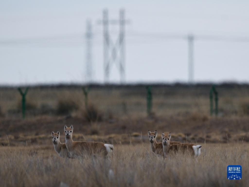 12月9日,幾只普氏原羚在青海湖邊的草場上活動。