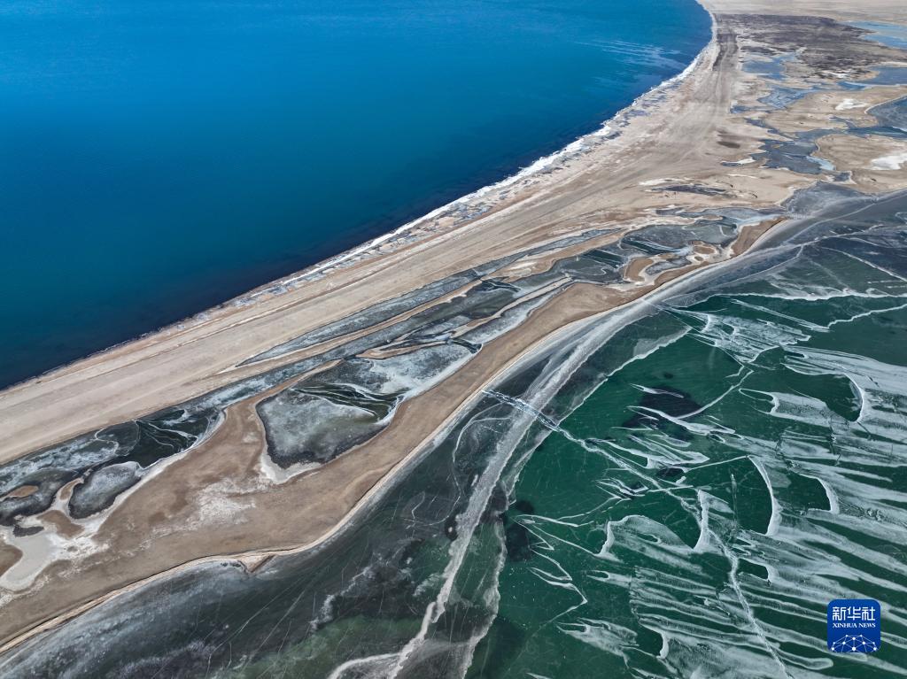 這是12月9日拍攝的青海湖一角(無人機照片)。