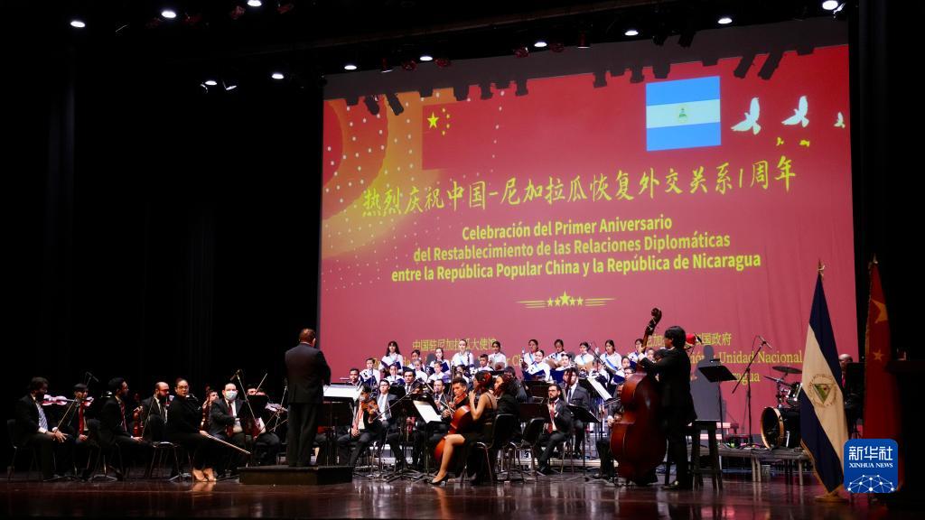 12月8日晚,慶祝中尼復交一周年專場音樂會在尼加拉瓜國家劇院舉行,兩國小學生合唱團演唱了《我愛你,中國》《茉莉花》和《我的尼加拉瓜》《純凈的桑樹》等中尼歌曲。