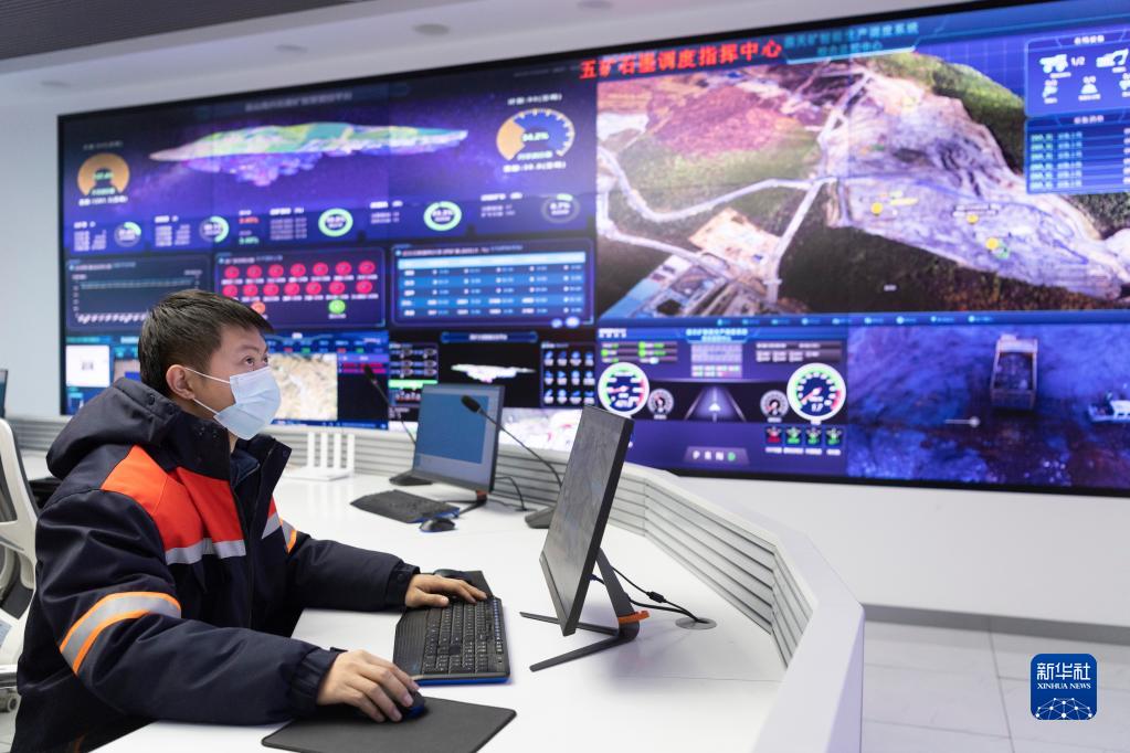 在鶴崗市蘿北縣,中國五礦集團(黑龍江)石墨產業有限公司的工作人員在調度指揮中心內作業(12月9日攝)。