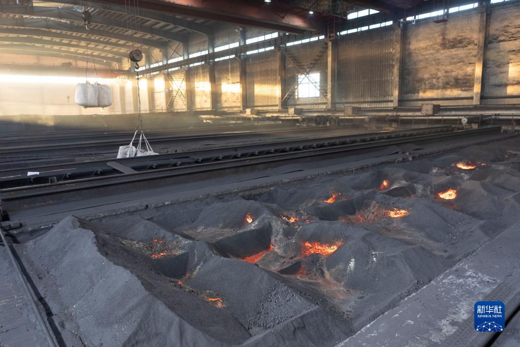 這是12月8日在位于鶴崗市的黑龍江海達新材料科技有限公司車間內拍攝的鋰離子電池負極材料的石墨化工序。