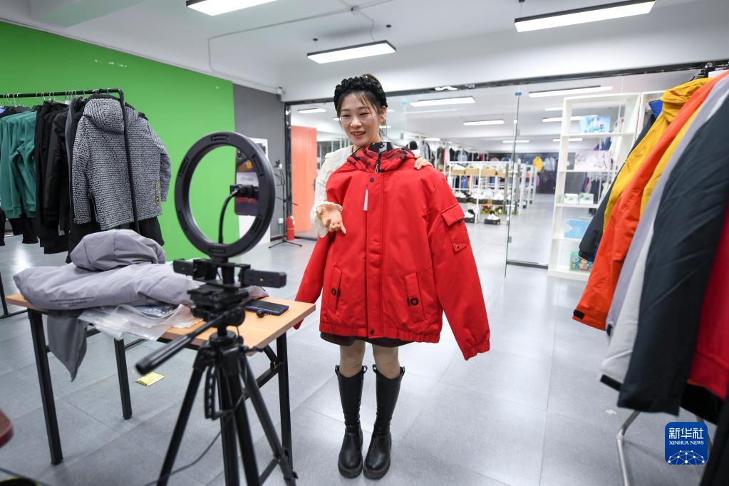 12月9日,電商主播在獅城寧好電商網批(西部)運營基地直播帶貨。