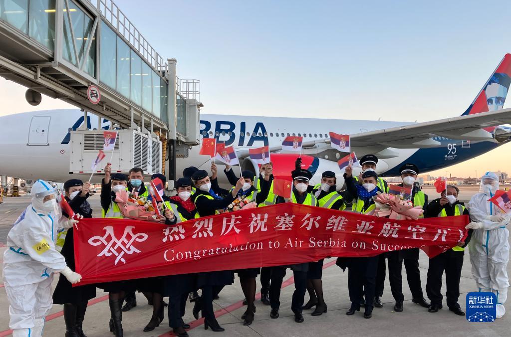 當日,搭載約170名旅客的JU702航班在天津濱海國際機場順利落地,標志著“貝爾格萊德-天津”直飛航線正式開通。