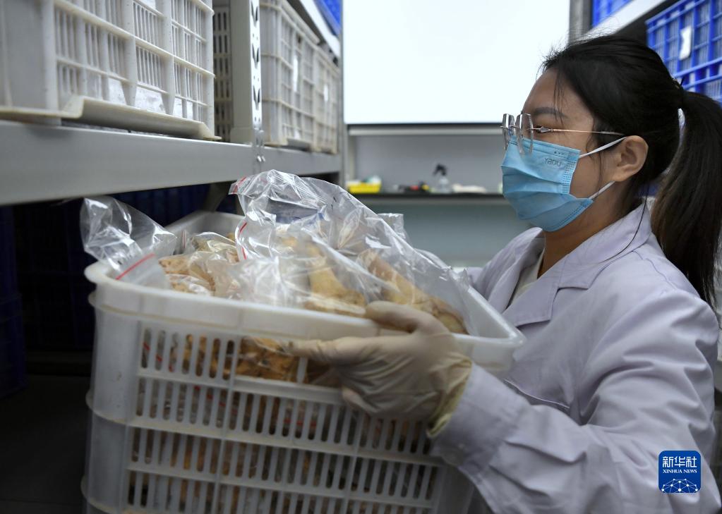 李彥楨在河南省文物考古研究院的標本庫內拿取骸骨標本(11月30日攝)。