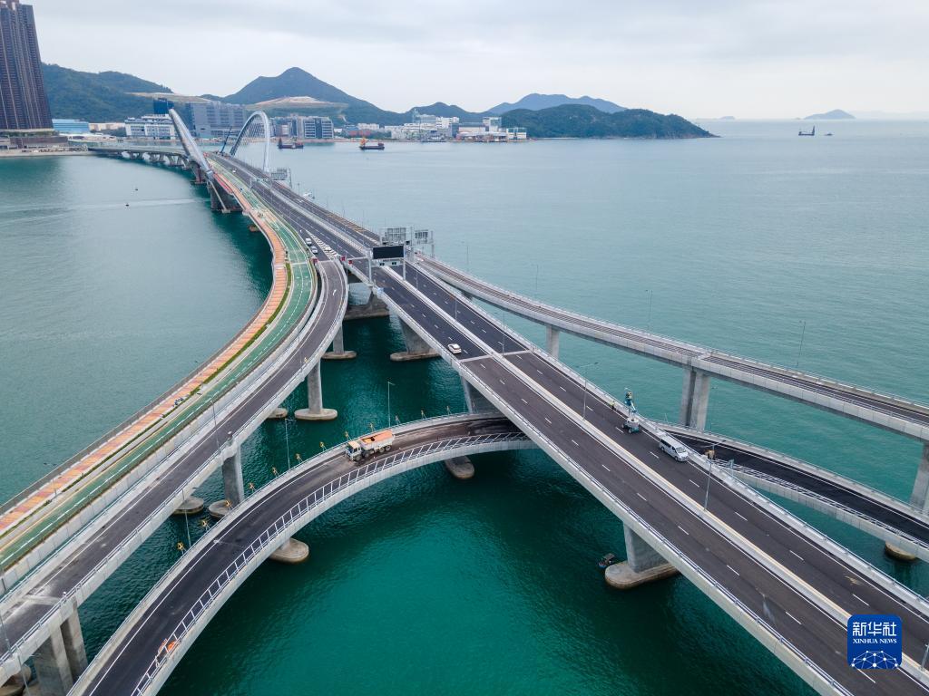 這是12月7日拍攝的香港將軍澳跨灣大橋(無人機照片)。