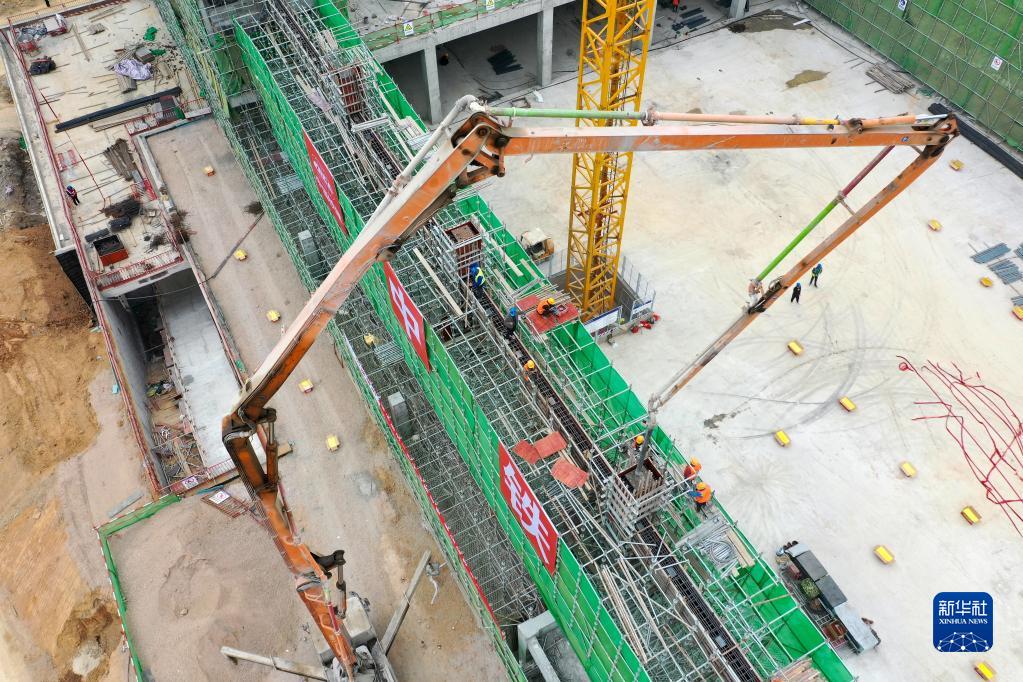 12月12日,工作人員在進行混凝土澆筑(無人機照片)。