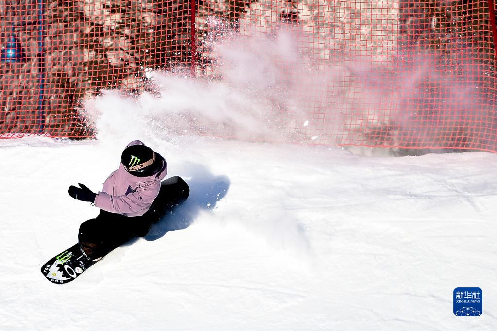 北京冬奧會單板滑雪男子大跳臺冠軍蘇翊鳴滑行在V-PARK地形公園內(12月10日攝)。