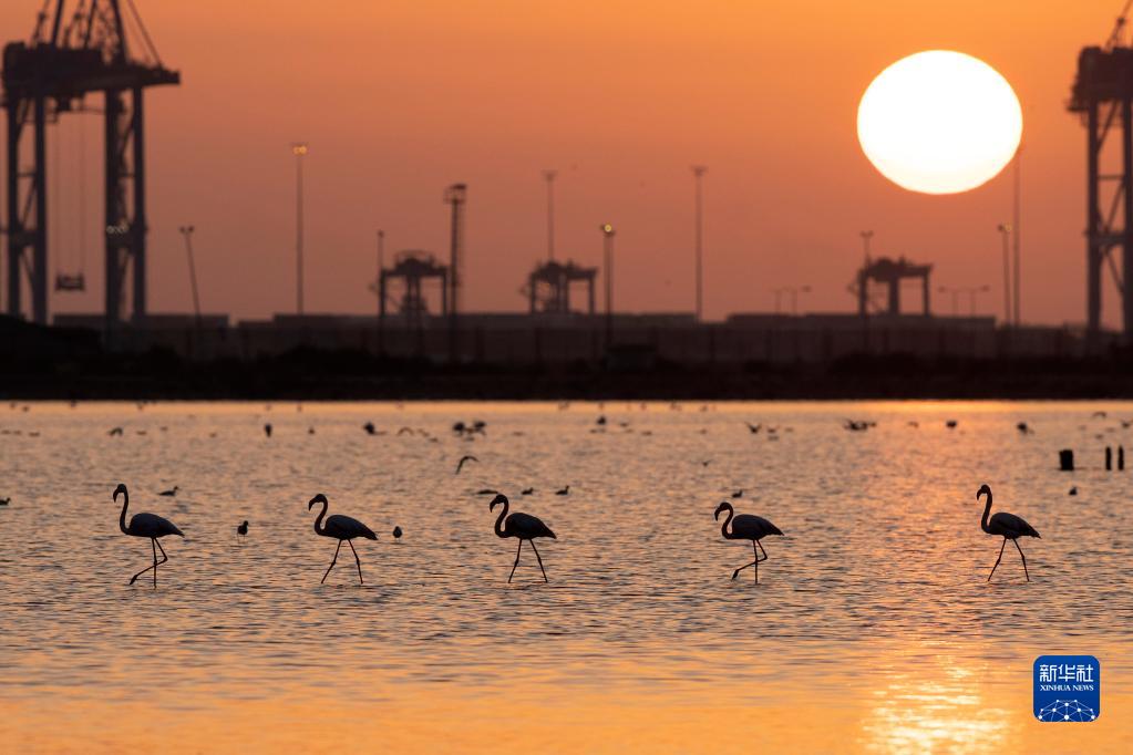 這是12月12日在埃及塞得港省福阿德港自然保護區拍攝的火烈鳥。