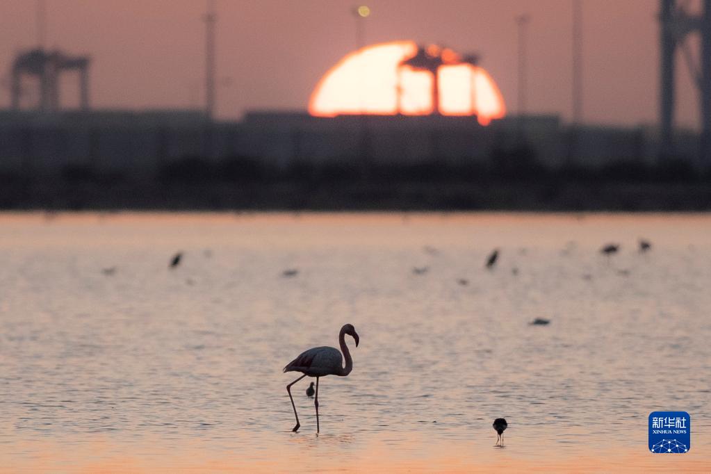 這是12月12日在埃及塞得港省福阿德港自然保護區拍攝的火烈鳥。
