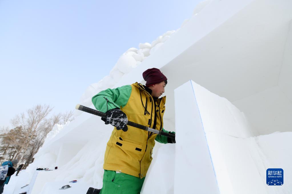 目前,哈爾濱市第35屆太陽島雪博會(huì)正全力推進(jìn)雪雕作品雕刻作業(yè)。園區(qū)內(nèi)大部分雪塊已經(jīng)開鏟,部分作品已完成雕刻。