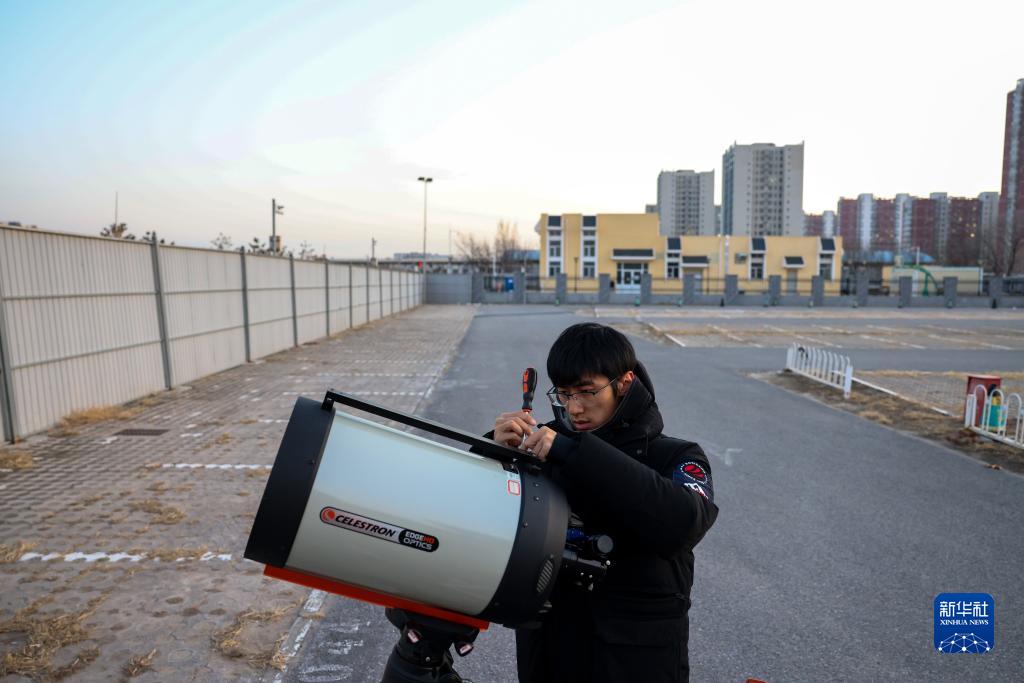 12月4日,在北京昌平一處拍攝地,劉博洋組裝調試追蹤拍攝設備,計劃拍攝即將返回地球的神舟十四號載人飛船。