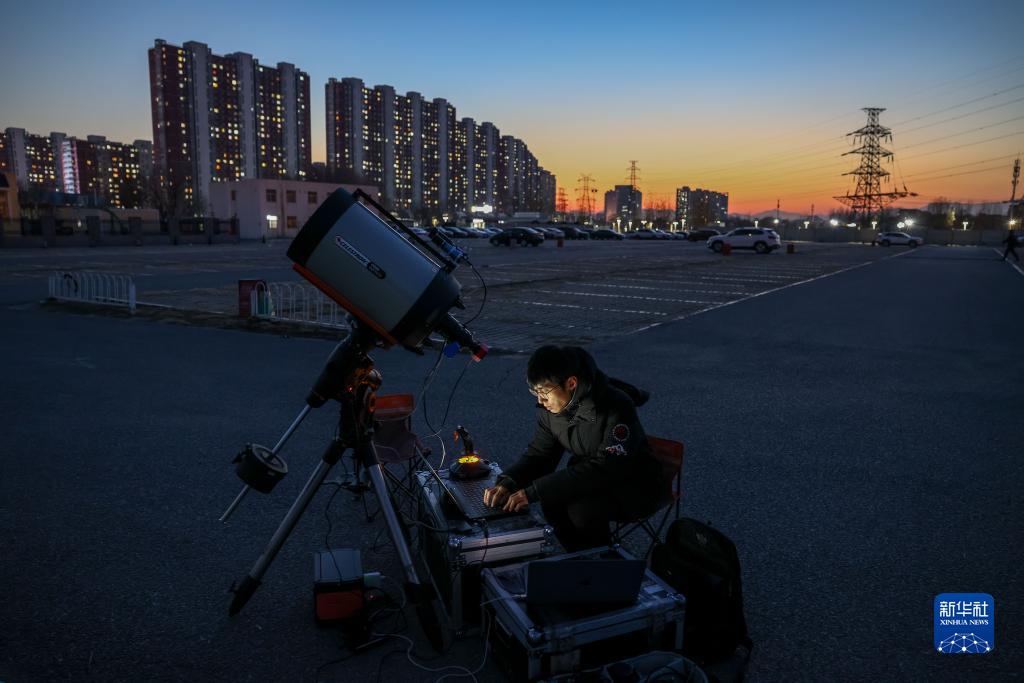12月4日,在北京昌平一處拍攝地,劉博洋調(diào)試追蹤拍攝設(shè)備,計(jì)劃拍攝即將返回地球的神舟十四號(hào)載人飛船。