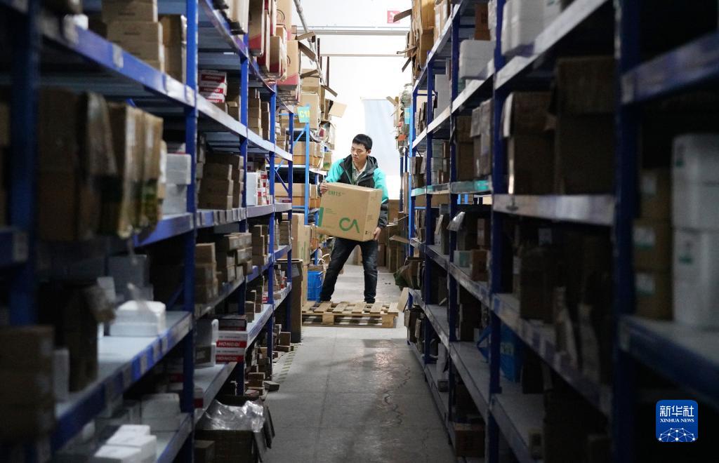 12月12日,工作人員在浙江省樂清市一電商產業(yè)園理貨。