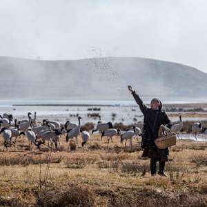 “九月九迎鶴來,三月三送鶴去”,清晨,伴隨聲聲鶴唳,陳光會走上河堤,拋撒鶴糧,看著越來越多的黑頸鶴,雖寒風凜冽,卻滿心歡喜。