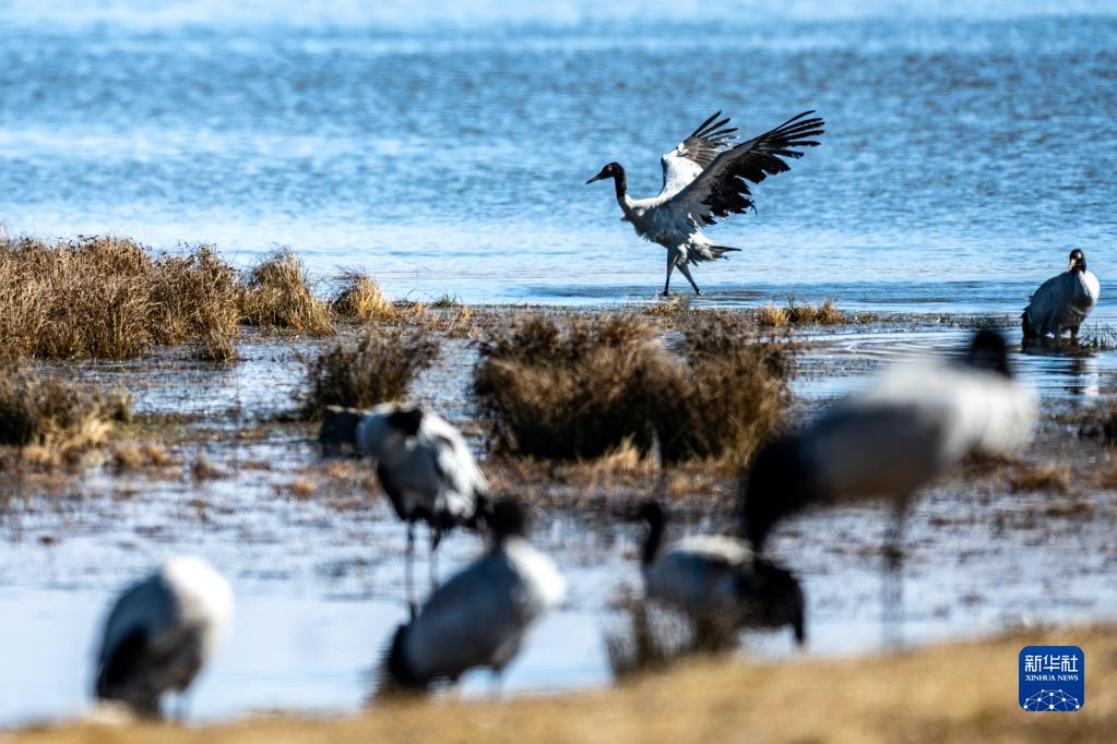 這是12月11日在云南大山包黑頸鶴國家級自然保護區內拍攝的黑頸鶴。