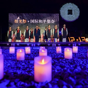 當日是第九個南京大屠殺死難者國家公祭日。入夜,各界人士在侵華日軍南京大屠殺遇難同胞紀念館集會,為南京大屠殺死難者舉行“燭光祭”,寄托哀思,祈愿和平。新華社記者 李博 攝