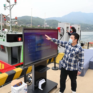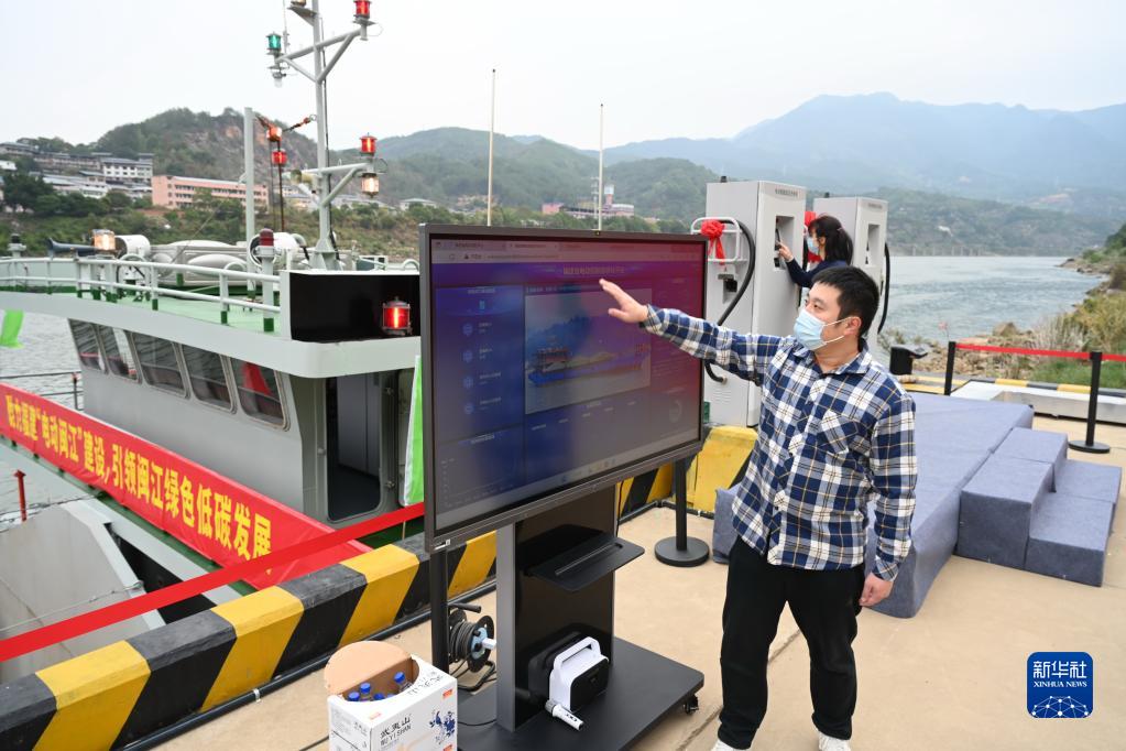 當(dāng)日,福建“電動(dòng)閩江”首個(gè)電動(dòng)船舶直流充電示范場景在閩江水口壩區(qū)的海事碼頭正式啟用。它的投用將進(jìn)一步加快福建內(nèi)河船舶綠色智能發(fā)展,提升閩江航運(yùn)質(zhì)量效益。新華社記者 林善傳 攝