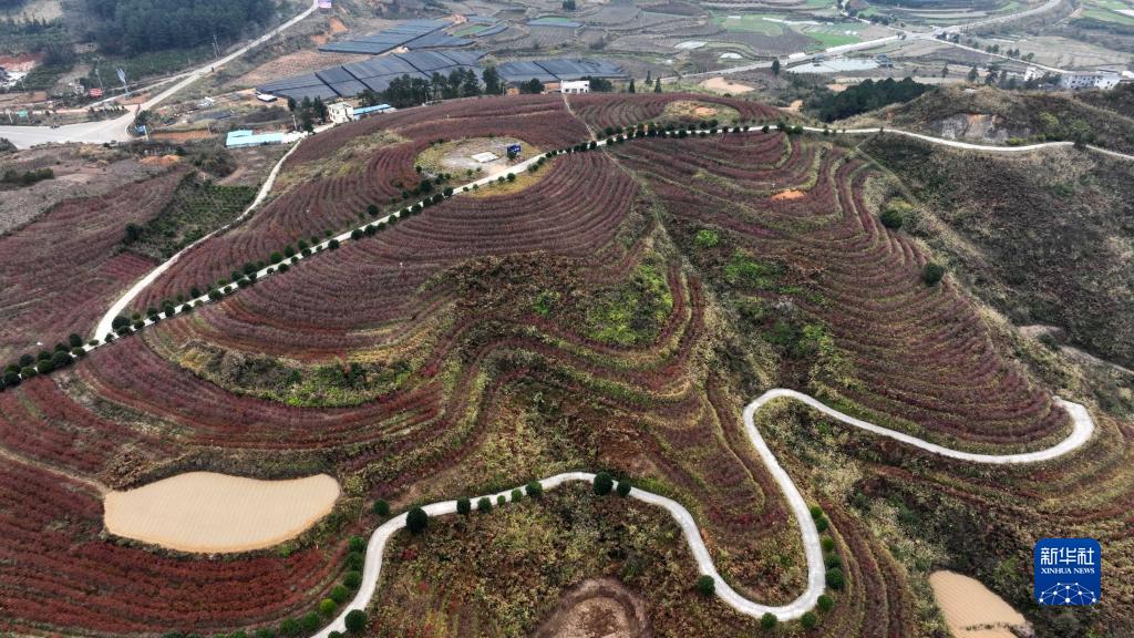 12月13日拍攝的貴州省丹寨縣興仁鎮(zhèn)茶葉育苗基地(無人機(jī)照片)。