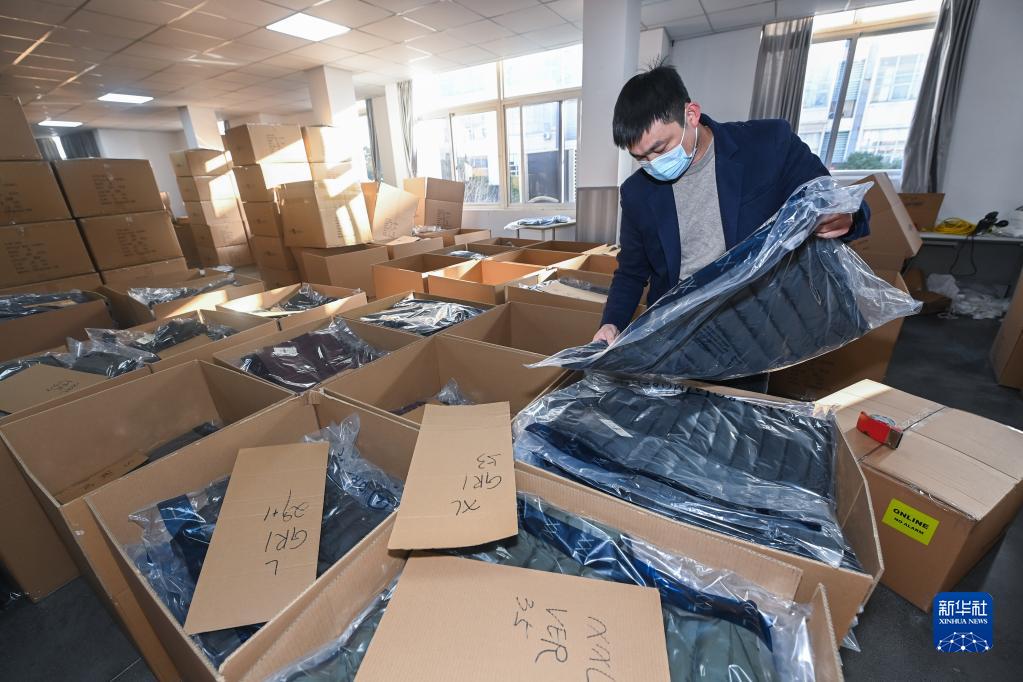 12月14日,在位于嘉興市南湖創業園的嘉興思凱服飾有限公司倉庫內,工作人員在打包一批外貿服裝。該公司是一家從事進出口業務的服裝企業,具有自營出口權,產品出口范圍涉及歐盟、美國等多地,企業于近期隨團赴日本參加亞洲紡織成衣展,目前正在趕訂單、忙生產。
