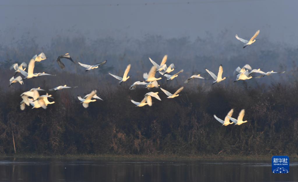 入冬以來,大批候鳥南飛抵達(dá)洞庭湖區(qū)。