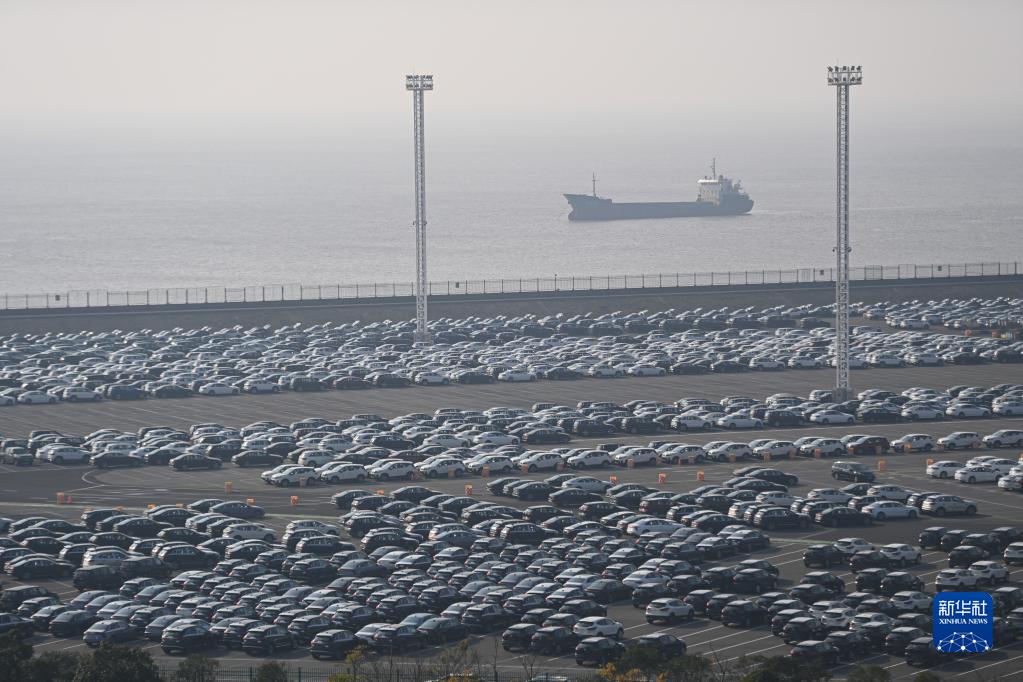 大量汽車停放在浙江寧波舟山港梅東碼頭(12月13日攝)。