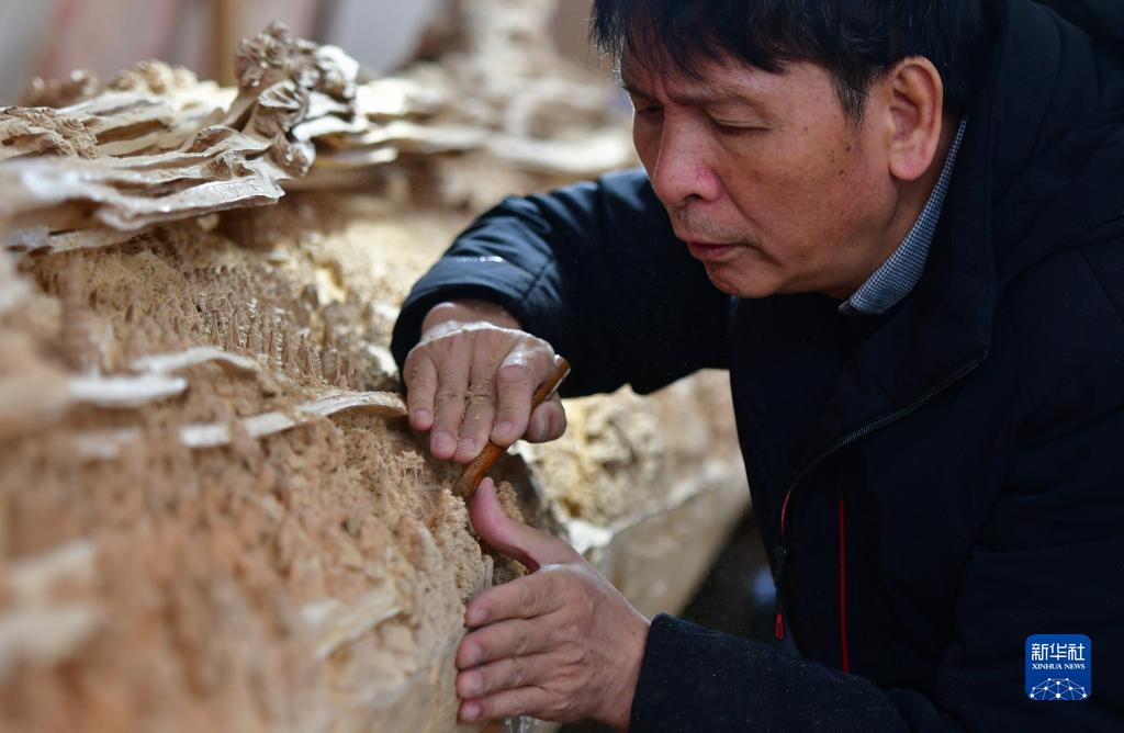 12月14日,國家級非遺項目莆田木雕省級代表性傳承人鄭春輝在進行雕刻。