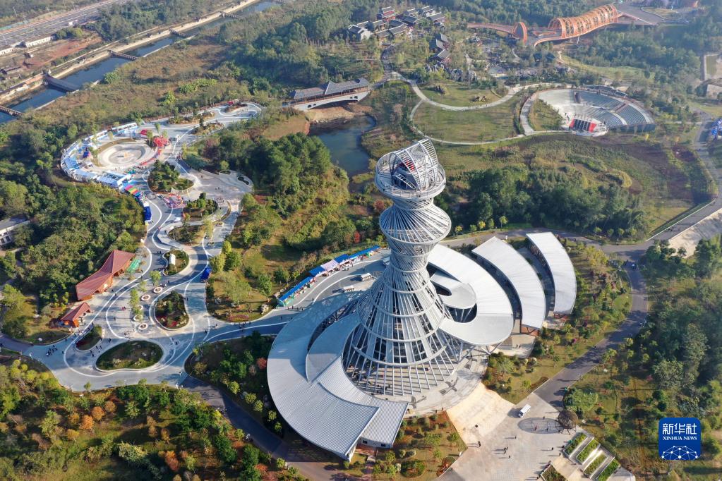 12月15日拍攝的廣西河池園博園景觀(無人機照片)。