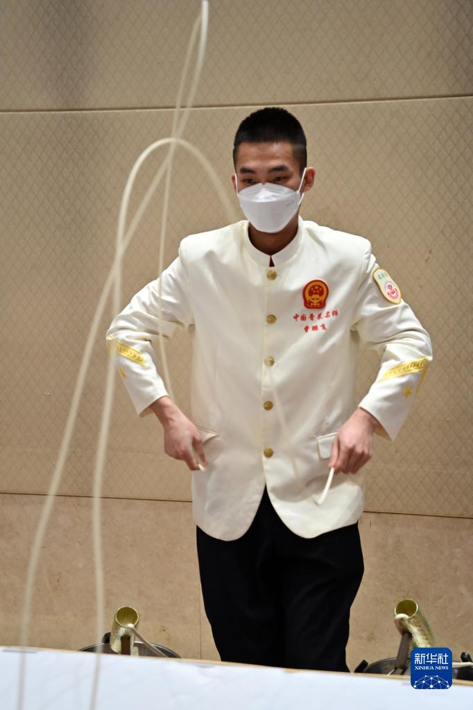 12月16日,廚師在2022中國非遺面食大會(huì)現(xiàn)場表演面食制作技藝。