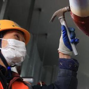 12月16日,中鐵五局建設者在貴陽軌道交通三號線東風鎮站內切割鋼材。